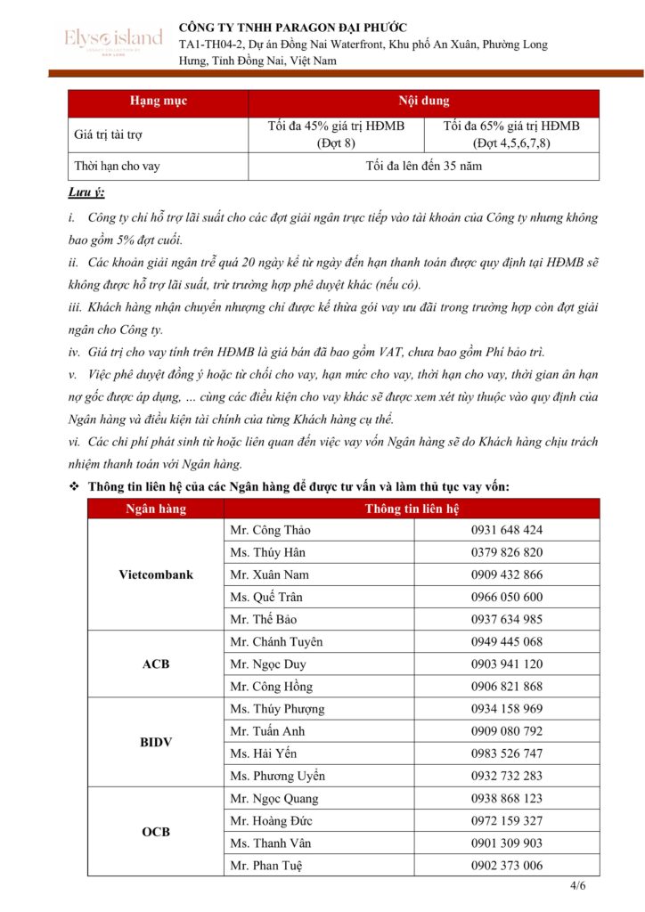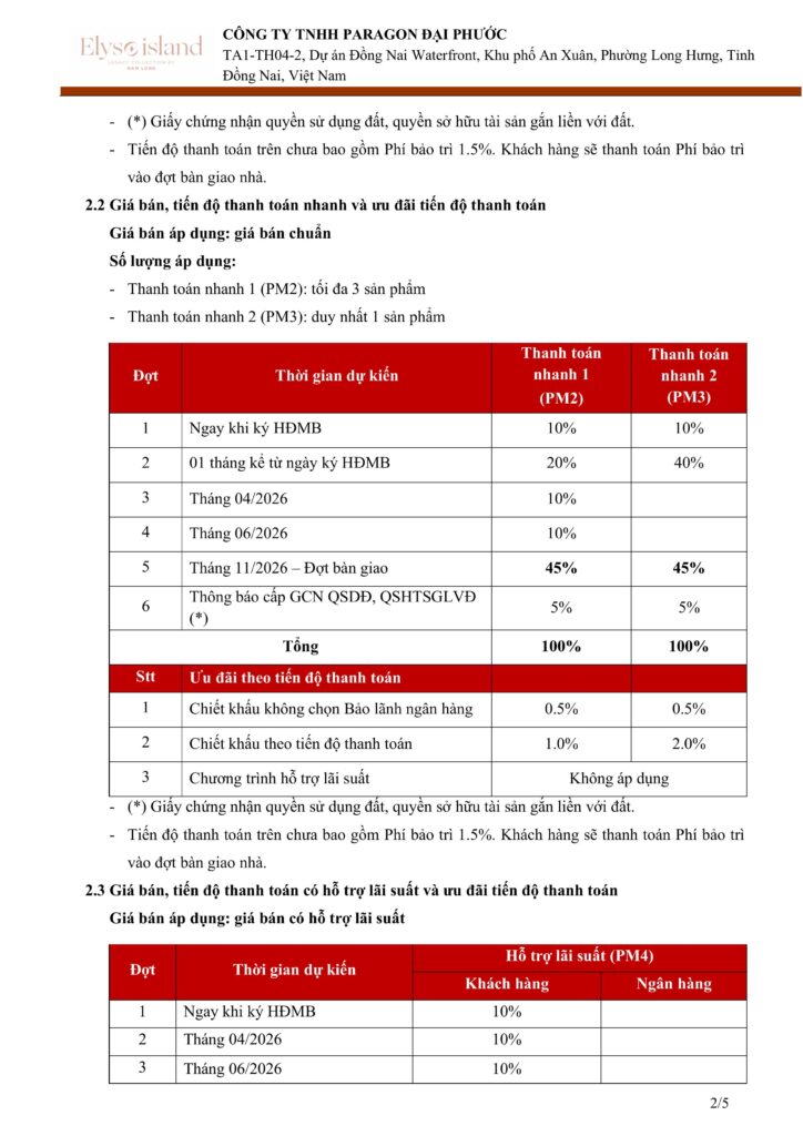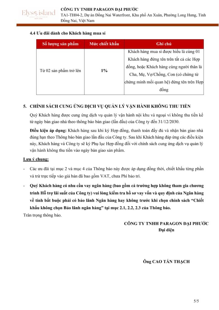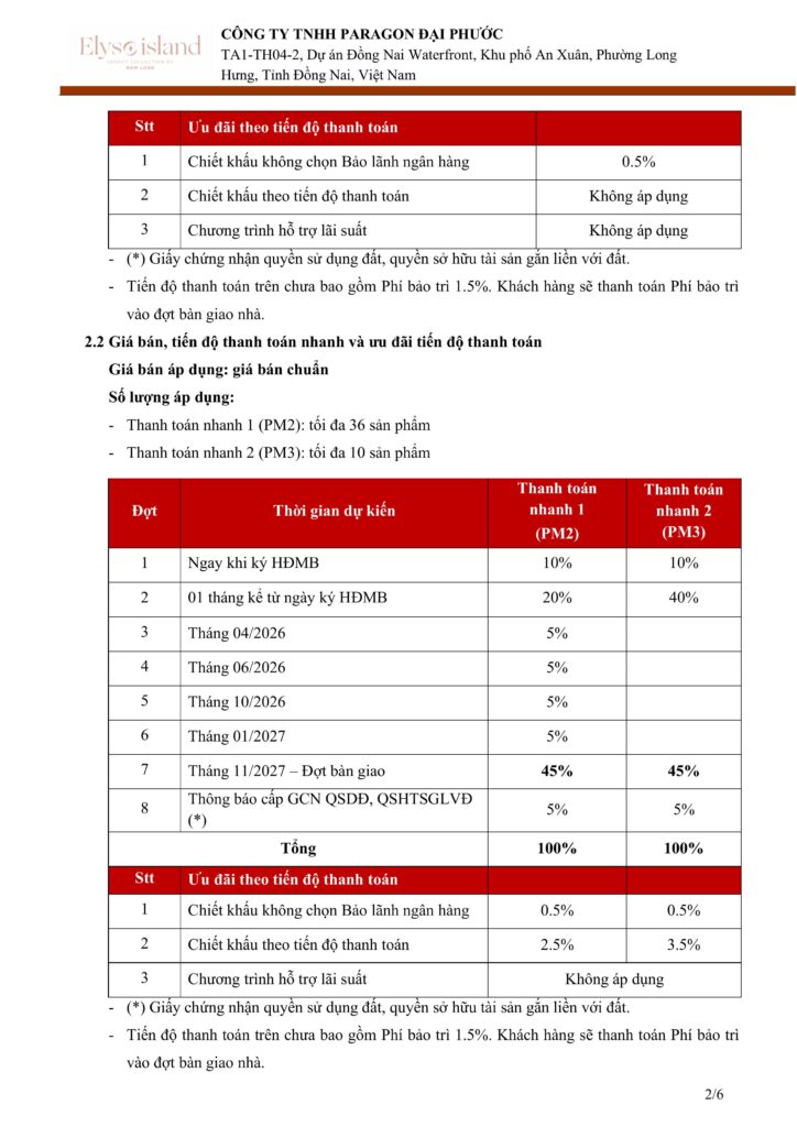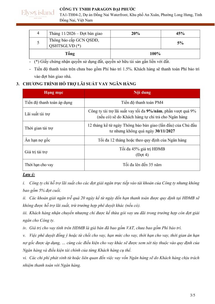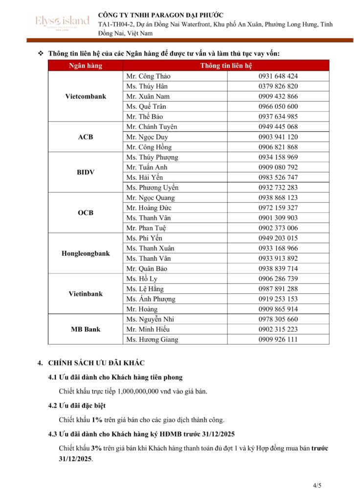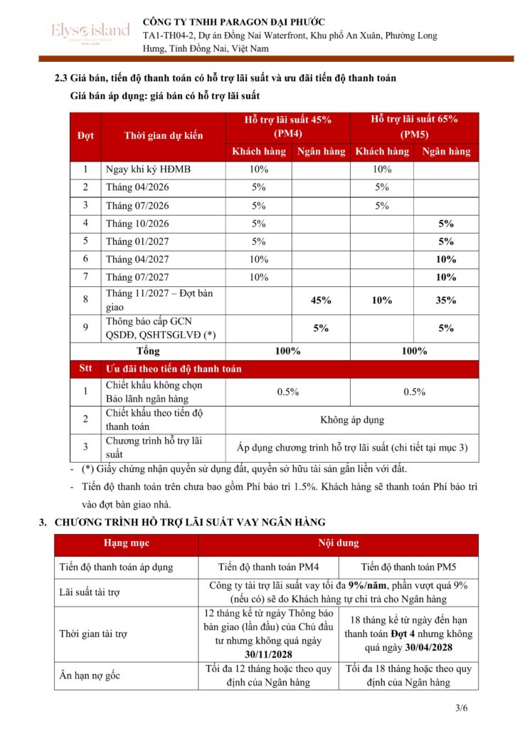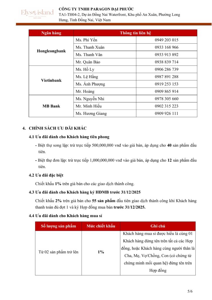 CHÍNH SÁCH BÁN HÀNG ELYSE ISLAND