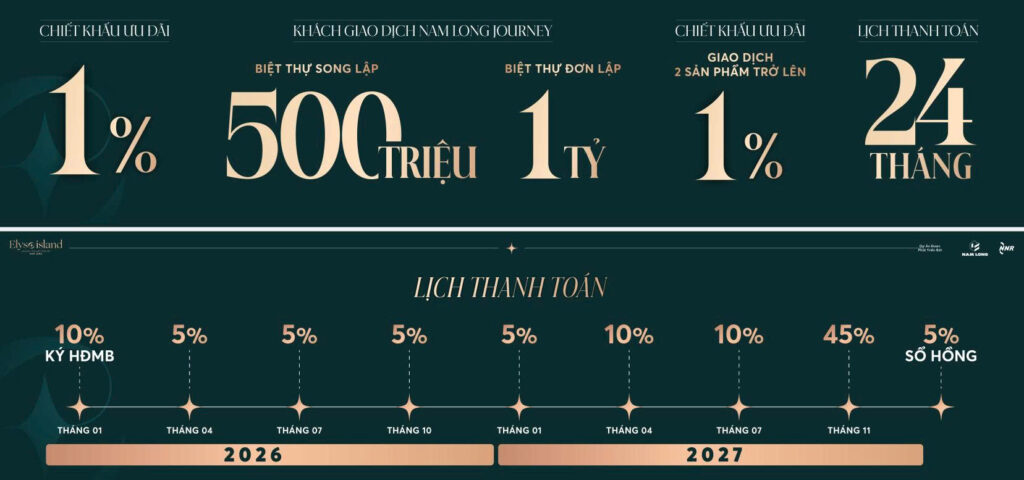 Giỏ hàng đặc biệt chủ đầu tư dự án Elyse Island – Chiết khấu đặc biệt cho khách hàng booking sớm tại sàn Nam Long.